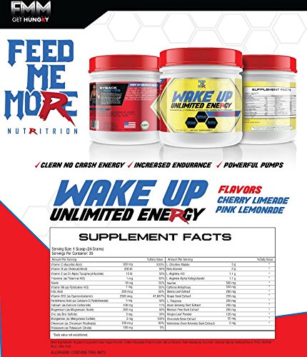 WAKE UP Unlimited Energy Pre Workout Powder Dietary Supplement Sweetened with Stevia (Pink Lemonade)