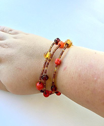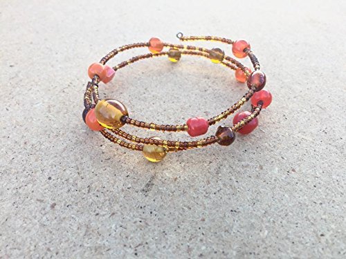 -. Title : 1 size Beaded wrap bracelet, brown and orange bracelet, stacking bracelet, memory bracelet, simple bracelet, cuff bracelet, unique bracelet
