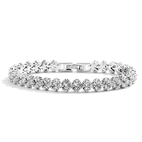 -. Feature : Mariell's Three-Row bracelet Adds Style and Glamour to Weddings or Everyday Wear. / Plated in Genuine Platinum-Based Rhodium and Measures 6 1/4" Long and 1/4" Wide / Stones are Top Quality AAAAA Grade Cubic Zirconia / Lifetime Guaranteed Silver Rhodium Plating with Enduring Lustre / Includes Beautiful Free Gift Box Ideal for Bridal, Wedding, Holiday or Anniversary Gifts