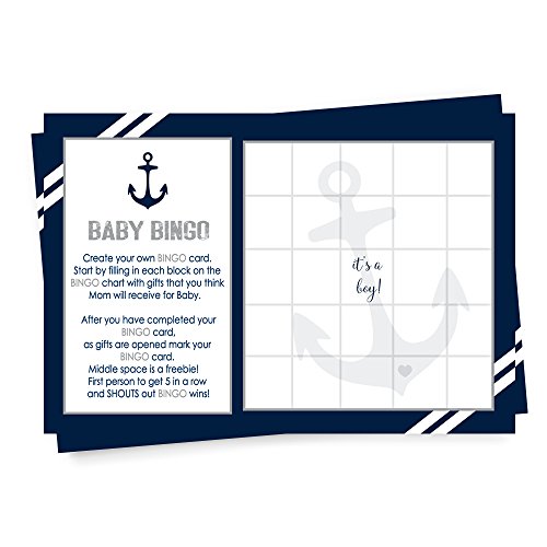 Nautical Baby Shower Bingo Game Card Pack of 25 Fill-In Paper