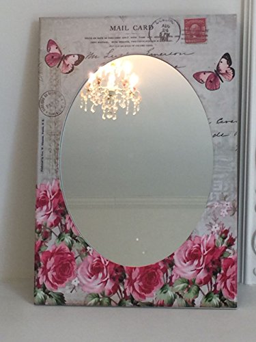 Oval French style wall mounted mirror, shabby chic, thick borders with beautiful floral design