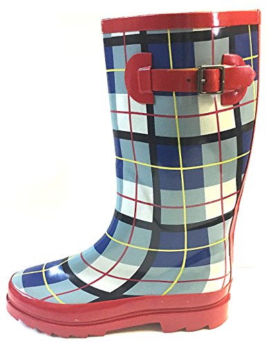 (Sunville)/Women's/Boots/DIRECT FROM USA/Sunville Women's Mid Calf Waterproof Rubber Garden Rainboots Red Plaid 7