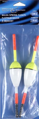 -. Binding : Sports -. Brand : South Bend -. Feature : Made of high quality balsa wood / Durable crack and chip resistant finish / High visibility fluorescent paint / Corrosion resistant spring / Float size: 1/2"Pieces: 2 -. Label : South Bend -. Manufacturer : South Bend -. Model : 168419-Parent-Parent -. ProductGroup : Sports -. ProductTypeName : SPORTING_GOODS -. Publisher : South Bend -. Studio : South Bend -. Title : South Bend Wooden Spring Float (Pack of 2)