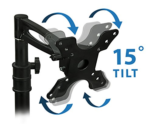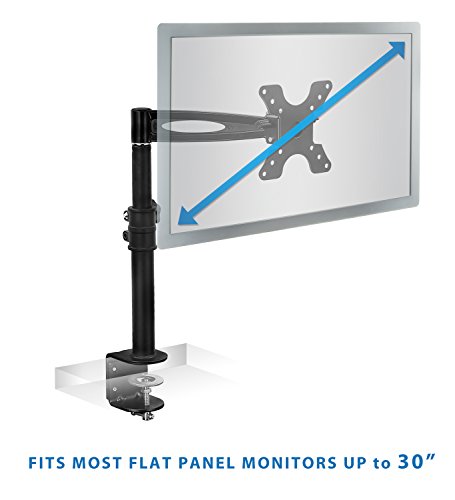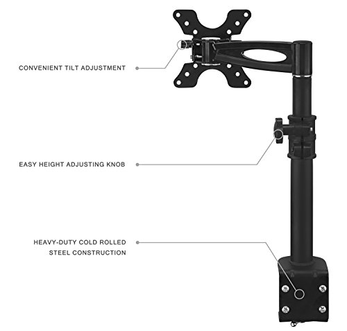 -. Feature : SINGLE MONITOR DESK MOUNT ARM - Universal monitor stand elevates your computer monitor to an ergonomic height and allows full motion capabilities. / FULL MOTION - Height Adjustable: 10 to 15 inches from desktop. Tilt: +/- 15 degrees, Swiveling Arm: 360 degrees, Rotate (landscape/portrait): 360 degrees. / COMPATIBILITY - Single monitor mounting arm fits flat panel monitors from Samsung, Sony, LG, Acer, Dell, HP, Asus, Sceptre from 17, 19, 20, 22, 23, 24, 25, 27, and 30 inch. Heavy-duty design supports up to 33 lbs / VESA MOUNT ARM - Meets VESA mounting pattern: 50 x 50, 75 x 75 or 100 x 100. Please measure your VESA (screw hole pattern behind the monitor) in millimeters before purchasing / MONITOR STAND WITH CLAMP - Heavy duty "C" clamp double lock ensures stable mounting onto the desk. No drilling required.