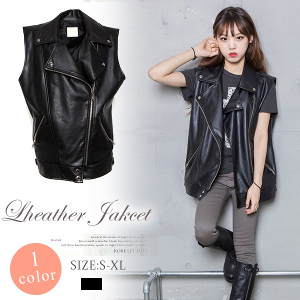 デイリーに活躍してくれそうなアイテム☆ライダースタイプの合皮ベスト!スリーブレスはハードになり過ぎないし重ね着コーデにぴったり?軽くてソフトなPUジャケットは着心地よし!本格的なレザーベストで着こなしにスパイスをプラスしてみて!(注意事項)※撮影時のライティング、ご覧になっているモニター?PC環境により実際の商品と色味が異なって見える場合がございます。※機械による生産過程におきまして、どうしても生地を織る際の糸の継ぎ目や多少のほつれ、または色ムラなどが生じている場合がございます。■状態:新品未使用■透け感:なし■素材:PU■カラー:ブラック■サイズ:S M L XLS 着丈61cm バスト96cm ウェスト90cm 裾口88cmM 着丈62cm バスト98cm ウェスト94cm 裾口92cmL 着丈63cm バスト100cm ウェスト98cm 裾口96cmXL 着丈64cm バスト102cm ウェスト98cm 裾口96cm