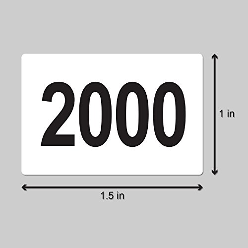Tuco Deals 1.5" x 1" Inch Large Number Square White / Black Consecutive Number Labels Self Adhesive Stickers - Numbers 2001 to 2500