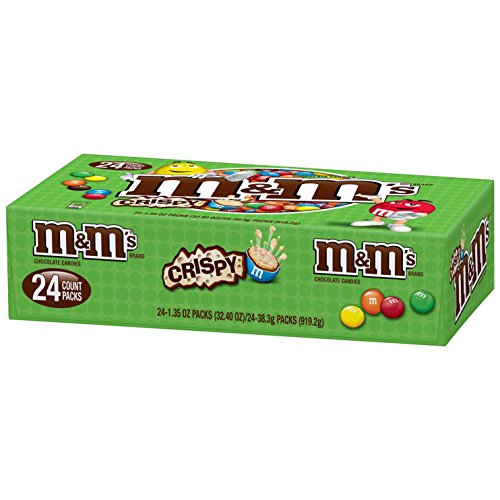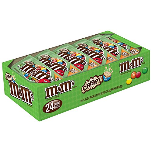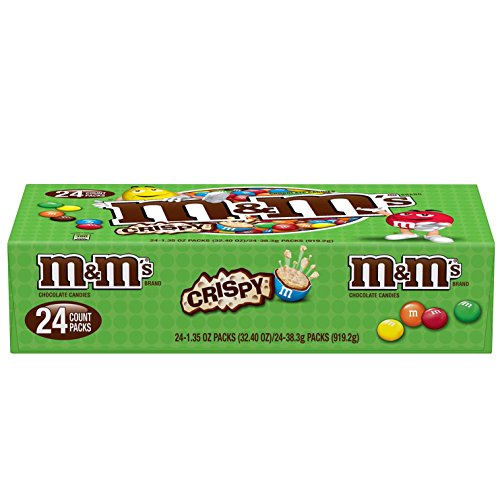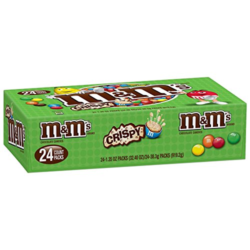 -. Feature : Contains one (1) box of twenty-four (24) 1.35-ounce pouches of M&M'S Crispy Chocolate Candy / M&M'S Crispy Chocolate Candy features a crispy center, coated with milk chocolate and in a colorful candy shell / Gone for more than a decade and brought back by popular demand, this crispy chocolate snack is back / These individual bags of Crispy M&M'S Candies are perfect for a midday snack / Each 1.35-ounce pack of M&M'S Crispy Chocolate Candy has 180 calories per serving