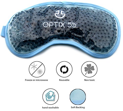 Studio : Optix 55 Publisher : Optix 55 Binding : Misc. Product Description A SOOTHING, CUSTOMIZED MASK Do dry, itchy eyes from allergies interfere with your quality of life? Need a soothing treatment to ease pain post-operation? No matter what your eye ailment, it's time to give your windows to the world some pampering. While a regular ice pack from the freezer may relieve achy joints, it does not suffice for the delicate periocular area skin, which is 10 times thinner than the skin on the rest of the face. This Eye Mask by Optix 55 features flexible ergo beads that hug your eye area for maximum skin contact a customized fit. The gel beads also retain their temperature longer than a wet towel compress for maximum effectiveness throughout the entire length of wear. Both microwave freezer safe, this 2-in-1 eye mask provides both heat cool relief. Lay back, relax rejuvenate! PRODUCT FEATURES: ? Reusable ? Elasticated Strap ? Microwave Freezer Safe ? One Size Fits Most ? Hand Washable HOW TO USE To create a heat compress, microwave for 20 seconds test the temperature with your finger before placing over the eyes. If the mask feels too hot, wait 2 minutes before re-testing. If a hotter mask is desired, heat for an additional 10 seconds. Do not exceed a maximum heating time of 40 seconds. This mask retains heat for approximately 30 minutes. If re-used within this time period, reduce microwave time by 10 seconds. For a cool compress, place the mask in the freezer for 1 hour or store in the fridge. OPTIMAL OPTICAL SATISFACTION Here at Optix 55, we create eye solutions that are not only effective, but also customized. That's why we offer this Eye Mask in a choice of 4 colors: - Grey - Pink - Blue - Transparent We back up our products with a 100% satisfaction guarantee. If for any reason you are not completely happy with your purchase, please contact a customer representative and let us improve your experience! 0