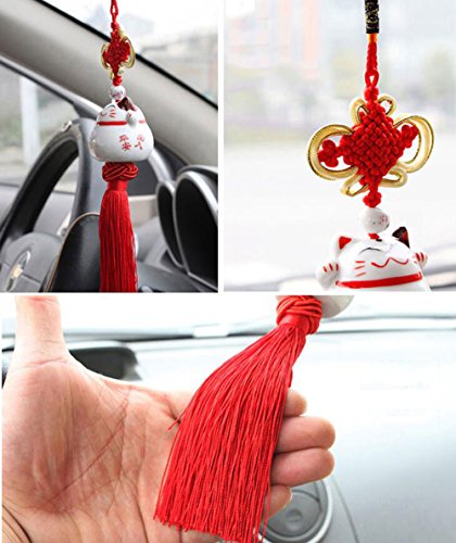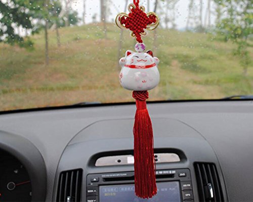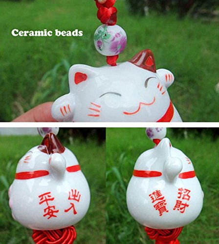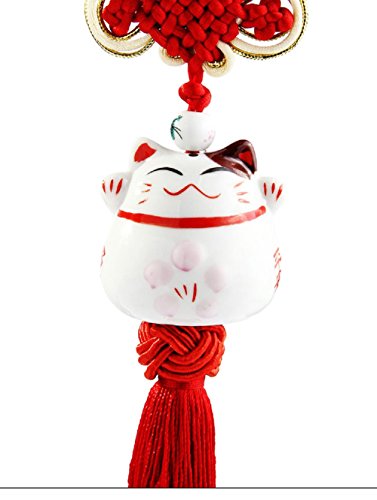 Feng Shui Lucky Cat Ceramic Pendant Japanese Maneki Neko Charm Hanging for Wealth Fortune by Novelty House