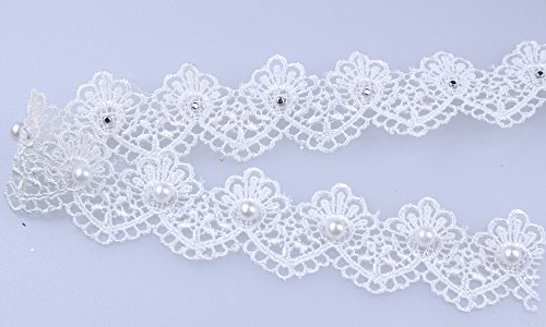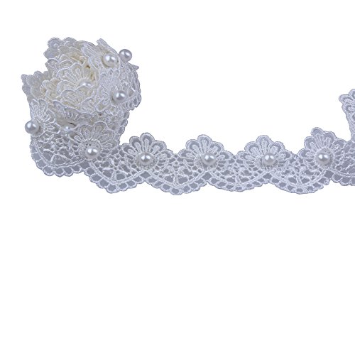 [Product Information]- Ivory Pearl and Lace Beaded Trimming Wedding Bridal Ribbon Vintage Look