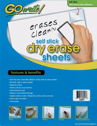 GoWrite! Dry Erase Self-Adhesive Sheets, 8.5-Inches by 11-Inches, White, 30 Sheets (ASB8511)