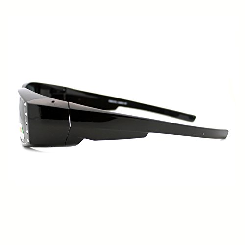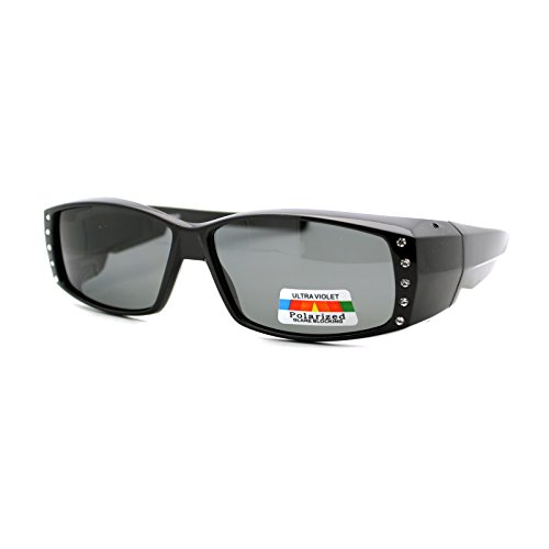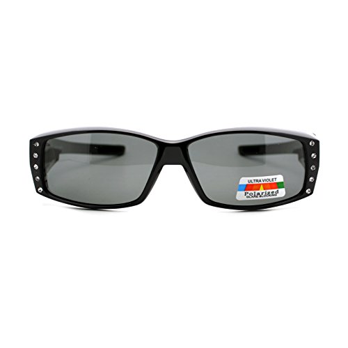 Polarized Fit Over Glasses Sunglasses Womens Rhinestone Rectangular Black