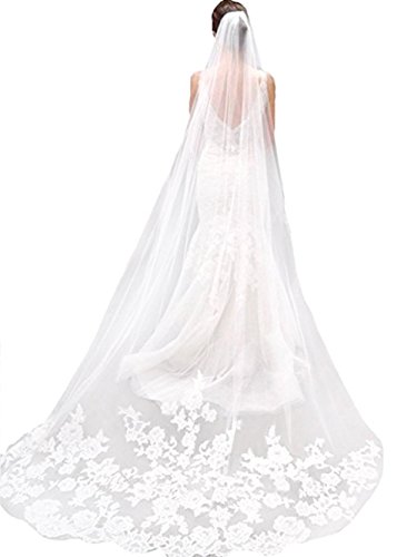 (YIPEISHA)/Accessories/Scarves/DIRECT FROM USA/YIPEISHA Lace Edge Cathedral Length Wedding Bridal Veil Comb - ivory