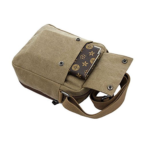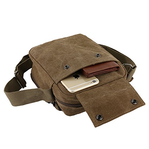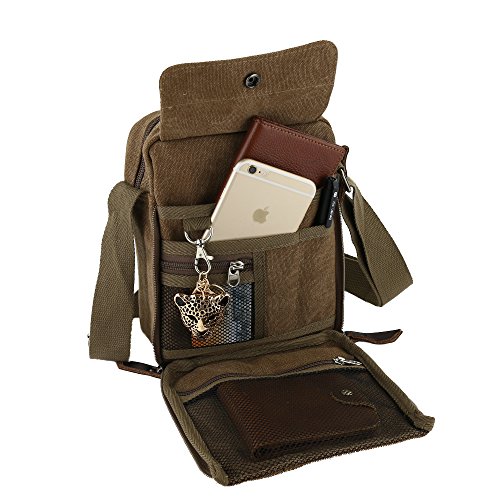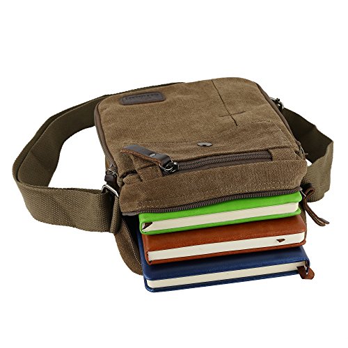 Product Description Would you like fashion and durable men canvas bag to use in a variety of casual situations? ? If so, the canvas messenger bag will be the perfect bag for you!? FEATURES: Size: 7.9 * 3.5 * 9.0 inch (L*W*H). Manufactured with high density canvas. It is very durable for student study, business, outdoor, travel and work. Shoulder strap is wide and adjustable, convenient and comfortable. Scientific and reasonable pocket lining design make your items lay in the bag systematically. Well made, perfect combination of a messenger bag and purse. Lots of space and storage space for such a little bag. Buttons are very secure. Tnot wrinkle, not deformation.he fabric feels more soft and skin-friendly. Comfortable wear and it stayed out of the way. If there is any other questions, please feel free to contact us. We promise to provide the best customer service ever. 0