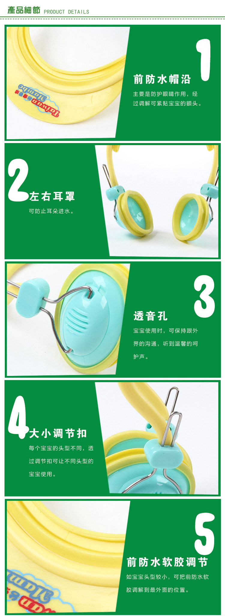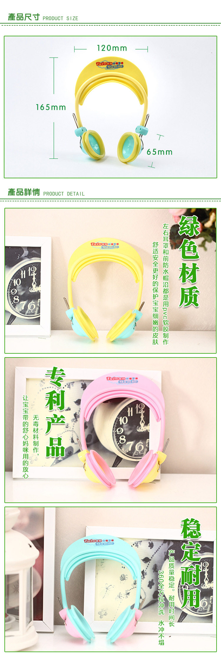 婴儿洗澡儿童防水耳套 耳罩 宝宝洗头帽 护耳帽 可调节大小