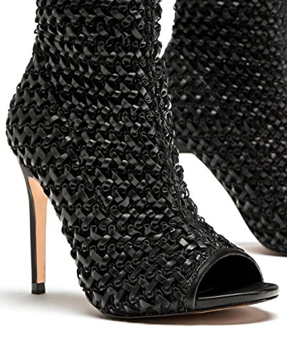 Product Description Black ankle-boot-style sandals. Braided elastic upper. Acrylic piece at the top of the heel. Stiletto heels. Heel height of 10.5 cm. / 4.1 inches Official brand size equivalence for Women Shoes. Size 35 | USA 5 ? ?|?UK 2 Size 36 | USA 6 ? ?|?UK 3? Size 37 | USA 6.5 |?UK 4? Size 38 | USA 7.5 |?UK 5? Size 39 | USA 8 ? ?|?UK 6 Size 40 | USA 9 ? ?|?UK 7? Size 41 | USA 10 ?|?UK 8? Size 42 | USA 11 ?|?UK 9? Size 43 | USA 12 ?|?UK 10 0