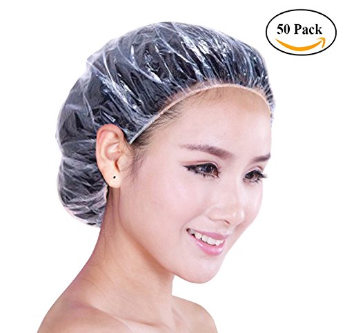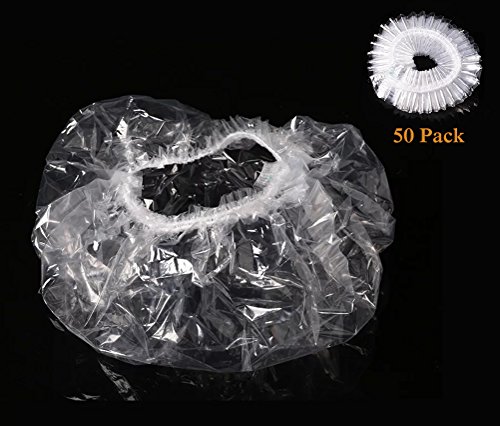 Brand name: BeeChamp Material: Food grade PE, rubber Color: clear Style: disposable, one time use Quantity: 50pcs/pack Application: hair treatment Size: one size fits most Package includes: 50pcs shower caps 1 BeeChamp felt key pouch NOTE: these shower caps are made from food grade PE and rubber (elastic band), due to temperature and weather condition, these shower caps may have rubber odor. 0
