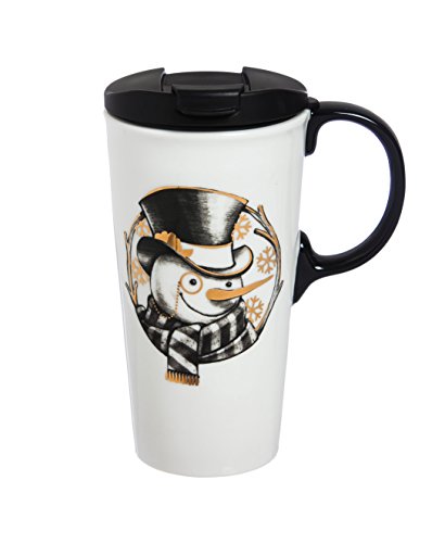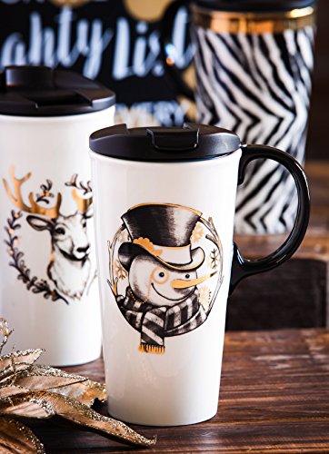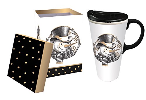 Cypress Home Vintage Gold Snowman Ceramic Travel Coffee Mug, 17 ounces
