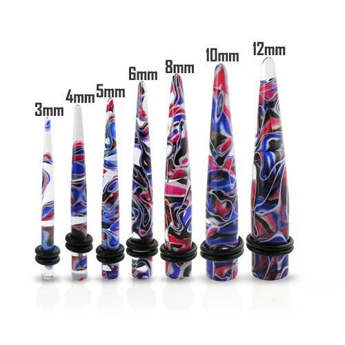 UV Multi Colored Marble Swirl Straight Ear Expander Material: UV Size : Available from 6mm Sold byPair only..