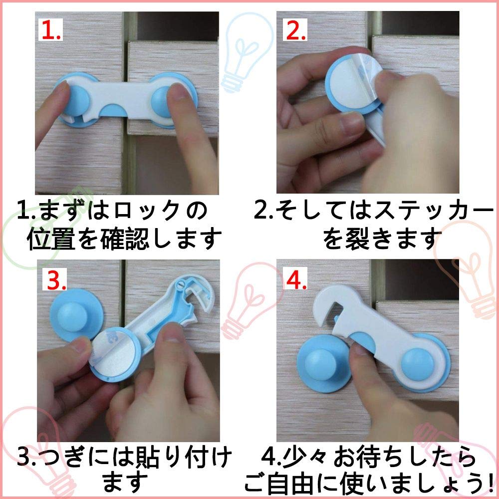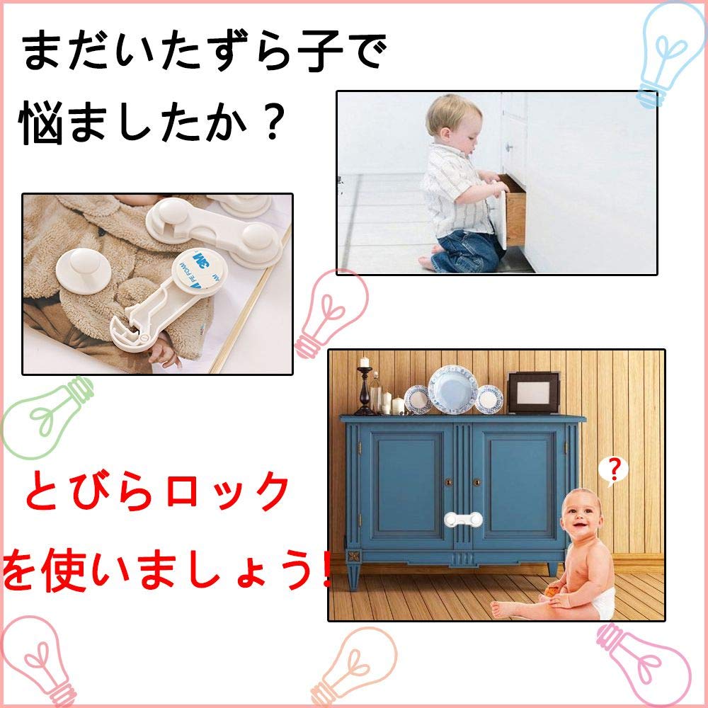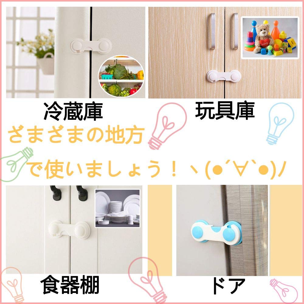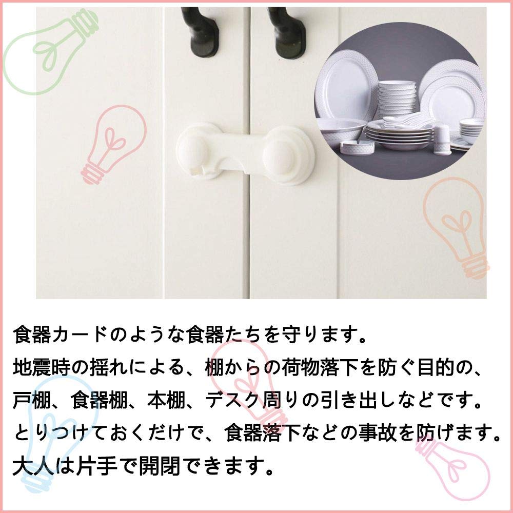 【どこても使いましょう!!】:ストッパー 戸棚、食器棚、ドア、トイレ、ゴミ箱、冷蔵庫、窓、デスクなどに使うことができます。食器、本、などの事故を防げます。ベビーガードを使ってこの状況を防げます。