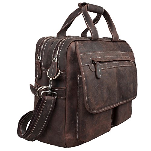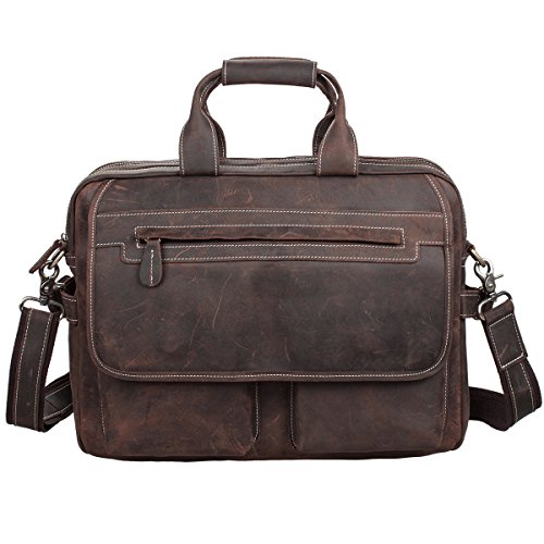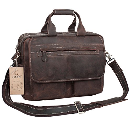 -. Title : S-ZONE Crazy horse leather Shoulder briefcase for 16 Inch Laptop Bag
