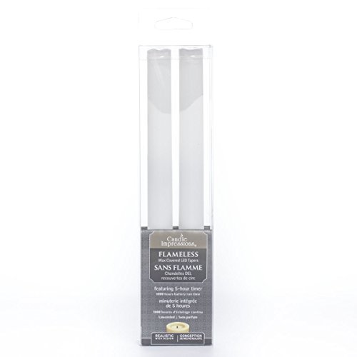 Candle Impressions CAT62280WH200 Wax Dipped Tapers with 5-Hour Timer, 9-Inch, White, 2-Pack