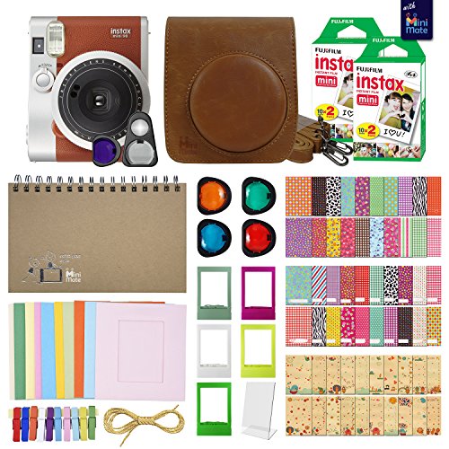 Fujifilm Instax Mini 90 Neo Classic Instant Film Camera (Brown) with 40 Instant Film + MiniMate Accessory Bundle. PU Leather Case, Frames, Retro Photo Album, Selfie Lens, Colored Filters and more