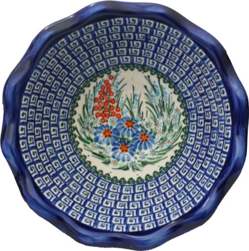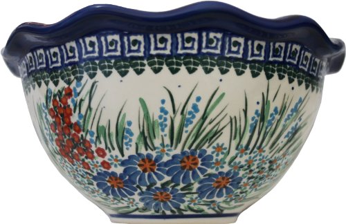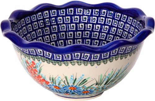 Polish Pottery Ceramika Boleslawiec 0413/169 Royal Blue Patterns with Blue Daisy and Orange Phlox Motif Bowl Fala Small, 5-3/4-Cup