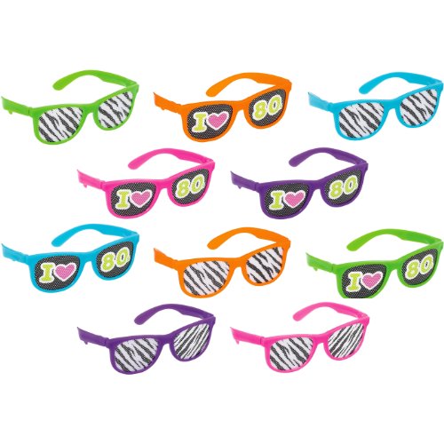 -. Title : Awesone 80's Party Assorted Color Glasses with P.R.Inted Lenses Accessory, Plastic, Standard Size, Pack of 10
