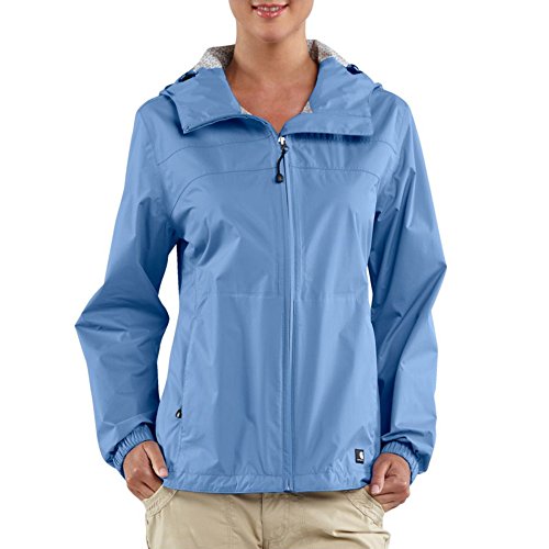 Let it pour, with its 3 ounce, 2,5-layer dura-dry waterproof breathable membrane, the Carhartt downburst jacket shrugs off wet weather with ease, the fully taped seams are waterproof, too, and the front zipper features an interior storm flap to keep out the rain, the two lower-front pockets have zipper closures, and the cuffs adjust with hook-and-loop closures, for even greater protection, you can pull up the attached hoodFeature