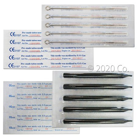 -. Title : 50 Pc Disposable Sterile Tattoo 5RL Round Liner Needles & 5R Round Long Tips stem nozzle tube