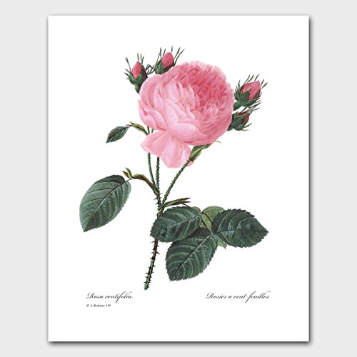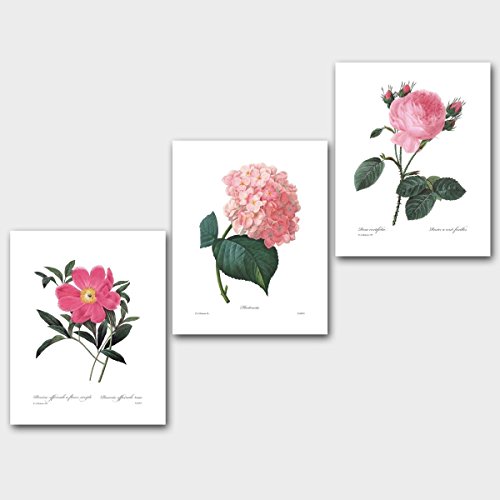 Set of 3 -- 8x10 inch -- Pink Flower Art -- Unframed Prints From a series of 40 French shabby chic botanical illustrations (Sold individually or in sets)