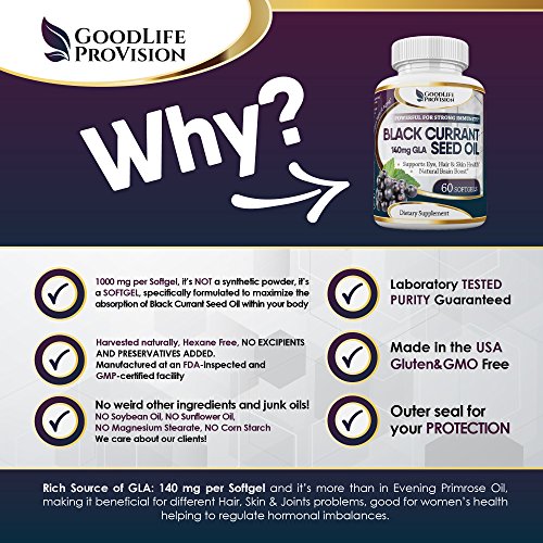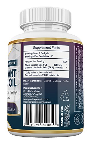 -. Feature : YOUR HEALTH IS P.R.ICELESS: Never too expensive to maintain - always too expensive to retrieve. We are proud of our commitment to providing information and education that will help you feel confident when selecting quality supplements. That's why we include the bonus guides to help you navigate through the world of Health Improvement and Daily Joy. / AN ANTI-AGING FORMULA & IMMUNE SYSTEM ENHANCER: our Hexane Free Black Currant Seed Oil is specifically formulated to Help you Support your HAIR, EYE, & BRAIN health and to make your SKIN Glow, to release pain from JOINTS AND MUSCLE SPASMS. And finally you can use this powerful antioxidant as a Natural Brain Boost & Memory Sharpener! / HIGH GLA FORMULA & 140MG GLA: Our Blackcurrant Oil soft gels contain more than double the amount of gamma linoleic acid than in Evening P.R.Imrose Oil, making it good for women's health, helping to regulate hormonal imbalances. Premenstrual Syndrome Relief is an added bonus. We also use softgels instead of capsules in our black current seed oil to help you maximize its absorption in your body and it's TWICE MORE than 500 mg. / HIGH QUALITY: Every Bottle goes through rigorous Quality Control and is made in a GMP-quality certified facility in the USA & made in the USA / ENERGY BOOST IS AN ADDED BONUS. It is such a pleasure to come home after a full day of work, and have the energy and enthusiasm to enjoy the evening!