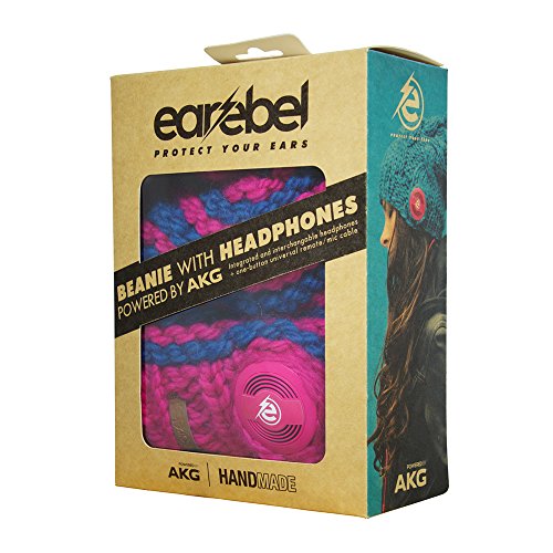 -. Title : Earebel Pink & Blue Striped Hand Knitted Bobble Hat Beanie with Built-In AKG Headphones, Nolana