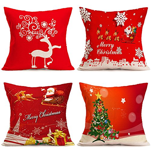 Christmas Pillow Covers set of 4 Throw Pillow Cases 18x18 for Home Car Decorative