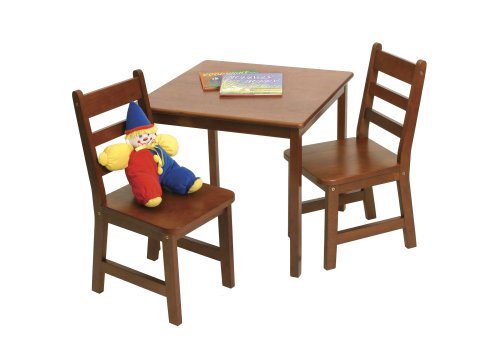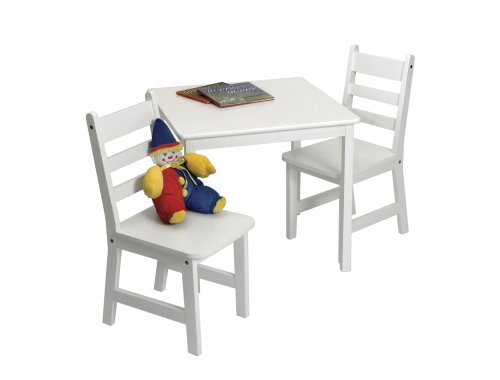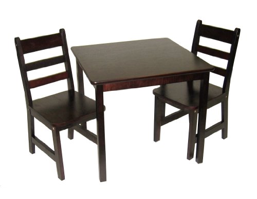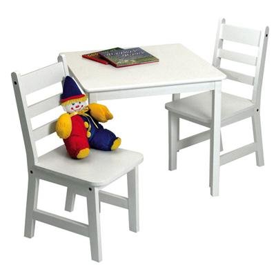 Child-sized square table set with 2 chairs; appropriate for ages 12 and younger