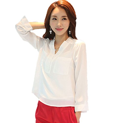 -. Title : moli&hani シャツ レディース ブラウス 春 シフォン Vネック 長袖シャツ 白 S M L XL