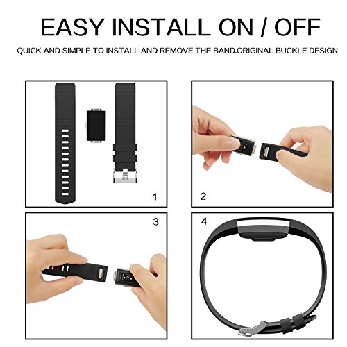 -. Feature : Perfect fit for your Fitbit Charge 2 Band activity tracker and comfortable wearing experience. / High Quality Material-interchangeable accessory bands for Fitbit Charge 2 is made of flexible and durable TPU material with stainless steel buckle,which makes the band easy to install and remove. / Pratical Function - our classic replacement bands for Fitbit Charge 2 are sweat,rain, splash and water resistant, intended for high intensity workouts. / Size can be adjusted according to the circumstance of individual wrist, one size fits all. / Different size for men and women.