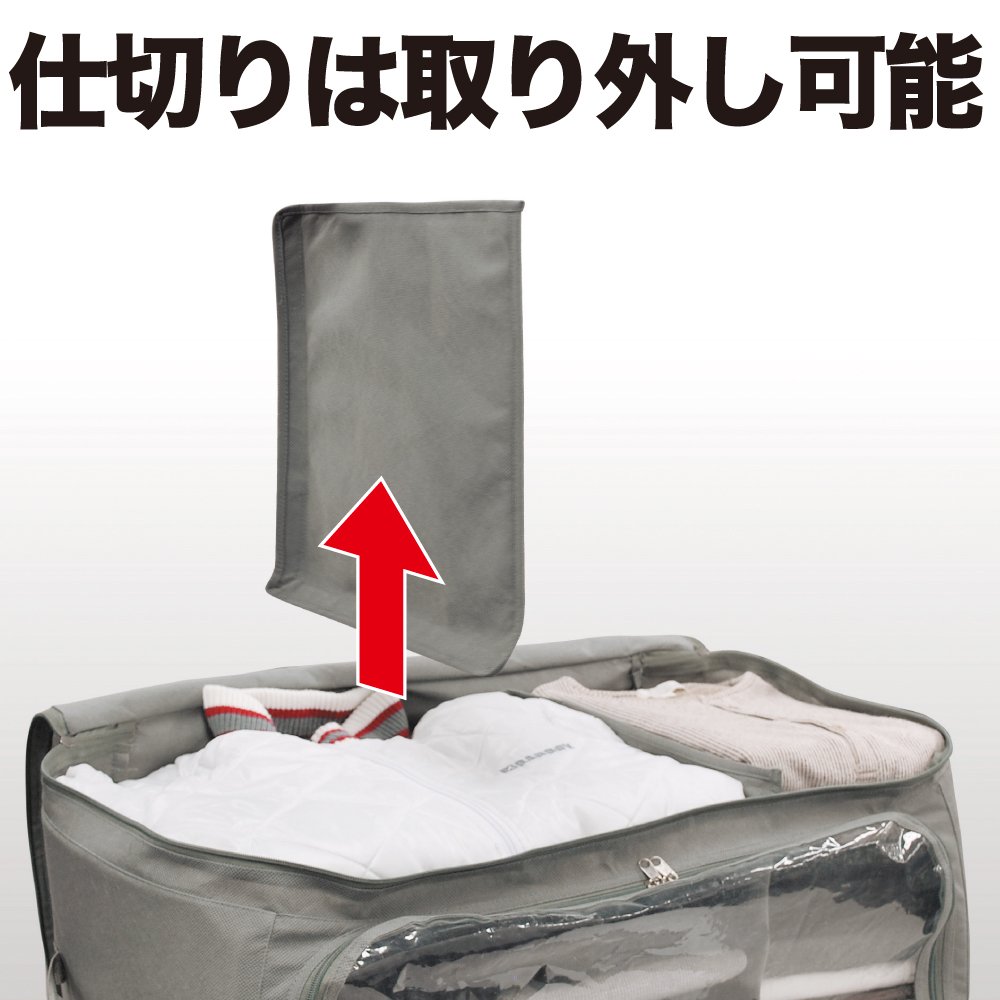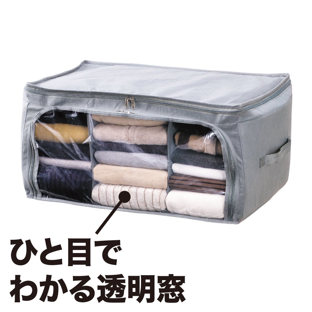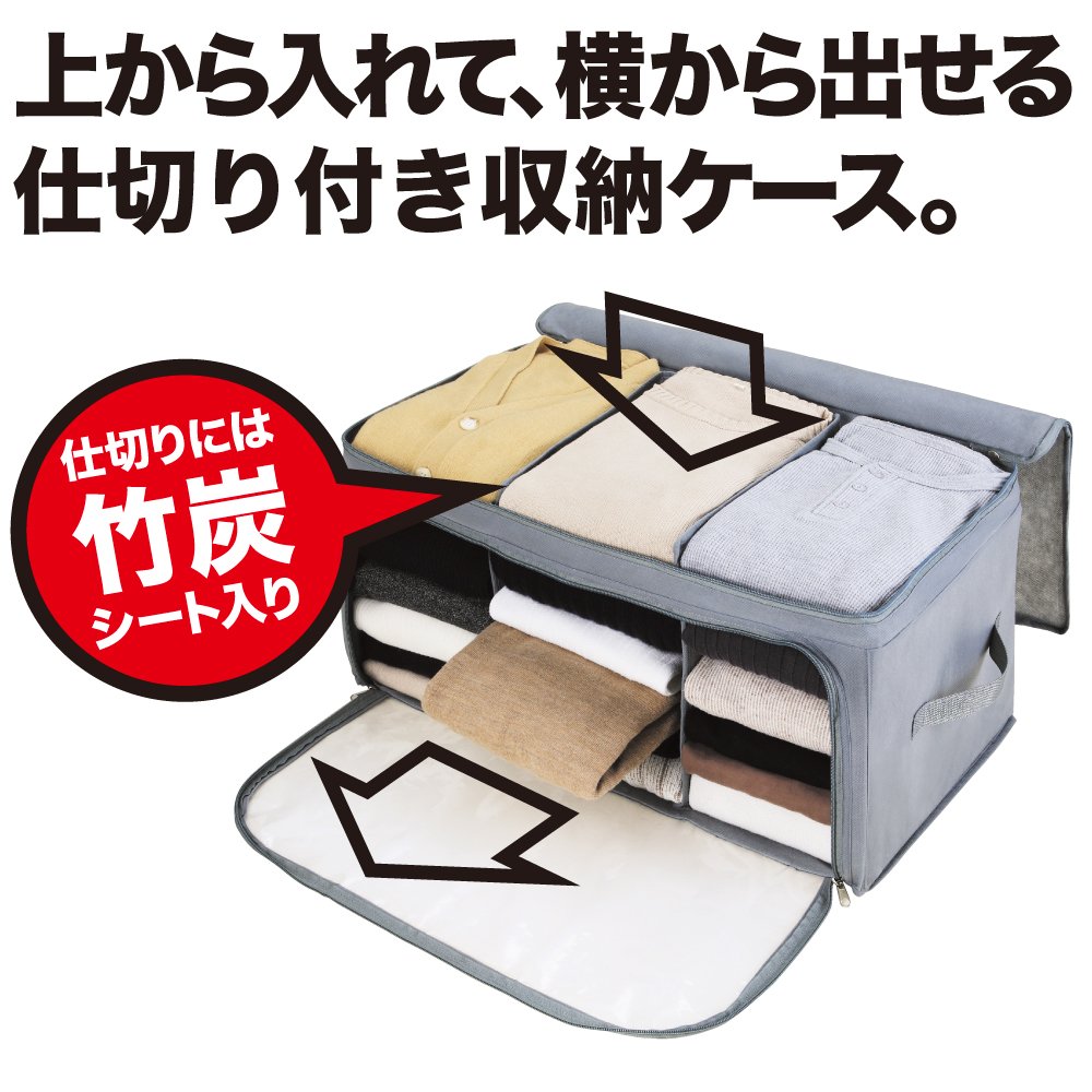 In the bamboo charcoal receiving case, clothing can be sorted cleanly by attaching a bamboo charcoal partition, and it can be stacked further.