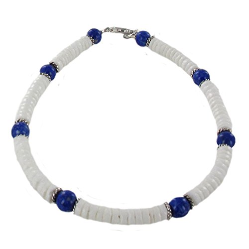 -. Title : Womens White Clamshell, Lapis Lazuli & Sterling Silver Ladies Beaded Gemstone Anklet