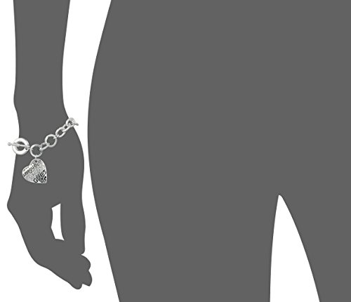 -. Title : GUESS "Basic" Silver and Crystal Graffiti Heart Toggle Charm Bracelet