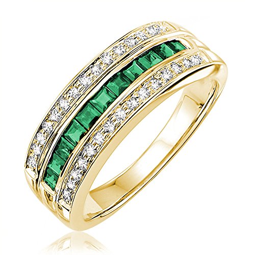 -. Title : 14K Gold Diamond and Genuine Emerald Rings (0.15TDW G-H Color,I1 Clarity) Size 6.5
