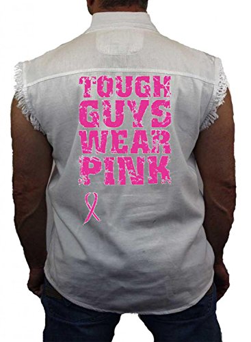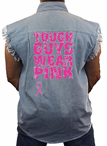 (Juiceclouds)/Men/Outerwear/DIRECT FROM USA/Breas t Cancer Denim Ves t Tough Guys Wear Pink Ribbon Mens Sleeveless Biker Wear M-5XL