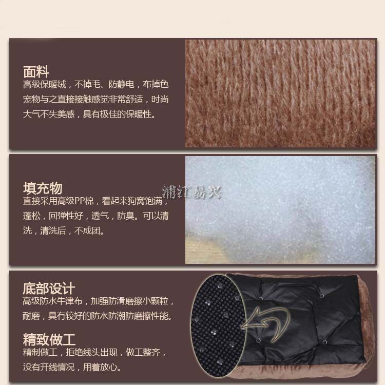 Surface material: suede Applicable object: General Lining material: PP cotton Specifications: XXS-45*31*15cm recommends 1kg less than pet use XS-50*38*15cm recommends 2.5kg less than pet use S---60*45*15cm recommends 6kg less than pet use M--70*52*15cm recommends 12.5kg less than pet use L---80*60*15cm recommends 22.5kg less than pet use XL-90*70*15cm recommends 35kg less than pet use