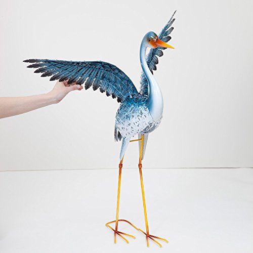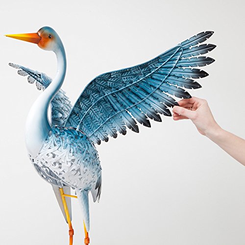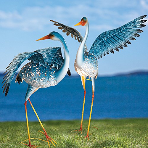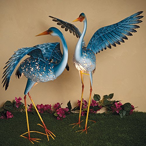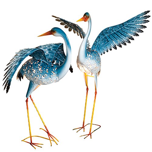 Bits and Pieces - Set of Two (2) Solar Powered LED Light-up Blue Cranes Garden Statues - Metal Cranes Perfect Garden Décor - Metal Garden Art, Outdoor Lawn and Patio Décor