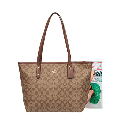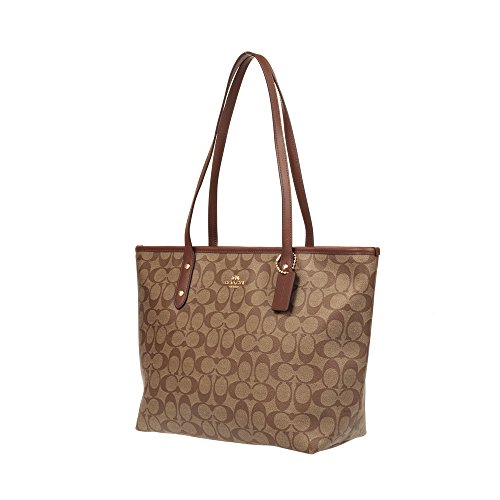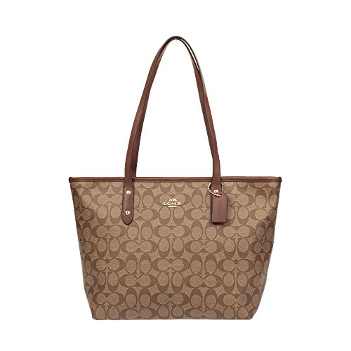 Coach Signature City Zip Tote IM/Khaki/Saddle 2