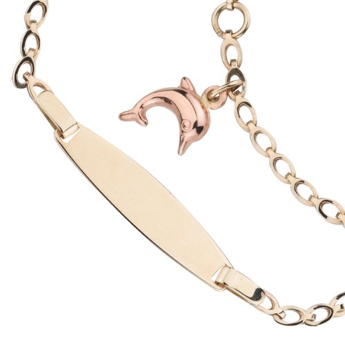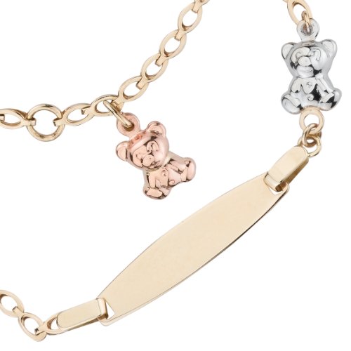 -. Title : 14k Yellow Gold Heart Baby ID Rolo Bracelet, 6"