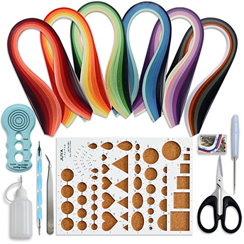 Juya Paper Quilling Kits with 30 Colors 600 Strips and 8 Tools (Paper Width:3mm, Blue Tools)