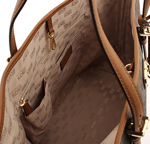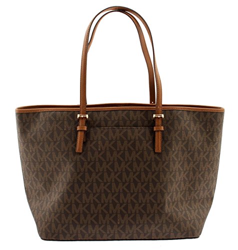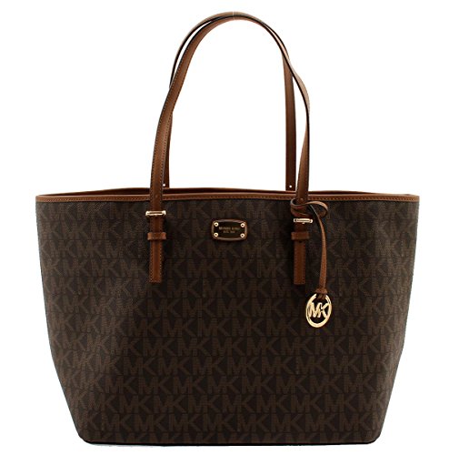 -. Brand : -. Color : Brown/Lage -. Department : womens -. EAN : 0191262095405 -. Feature : PVC Trimmed Leather / Gold-Tone Hardware, MK Logo Plated on Front / Open Top with Bridge Flap, Double Shoulder Straps with 9.5" Drop / Back Slit Pocket, Interior Features 1 Zip Pocket and 4 Slip Pocket / 19" (L) X 11.5" (H) X 7" (D) -. Model : 35F6GTVT3B BROWN/LAGE -. ProductGroup : Shoes -. ProductTypeName : HANDBAG -. Size : One Size -. Title : Jet Set Signature Carryall PVC Large Tote Shopper Bag in Brown -. UPC : 191262095405