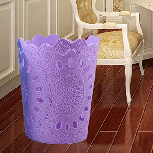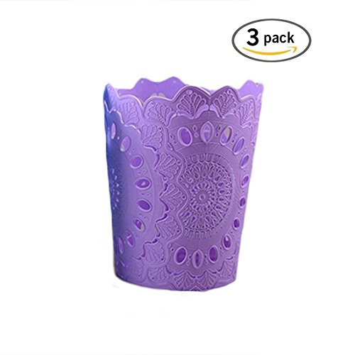 Wastebasket,Hmane 3PCS PP Hollow Pattern Solid Paper Basket Trash Can Dustbin without Lid -- Purple